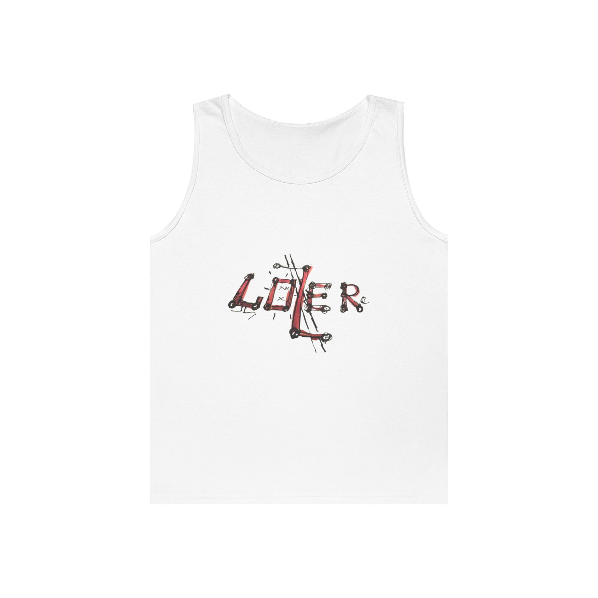 Cotton red design Loser Tank Top. Designed by David Saunders.